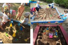 Игры с песком имеют большое значение для поддержания психического здоровья, развития познавательных процессов, влияют на становление всех сторон личности, формируют гуманное, искреннее отношение к людям и всему живому. 12 августа в детском саду прошел тематический день «Песочные фантазии». Из влажного плотного песка – дети строили целые замки, мосты и города. Постройки были разными, не похожими друг на друга, они заставляли удивляться и мечтать. Все ребята проявляли творчество и фантазию. Детям очень нравилось украшать свои постройки камушками, ракушками, листиками, шишечками, цветочками, делать при помощи ладошек песчаные дюны и барханы.