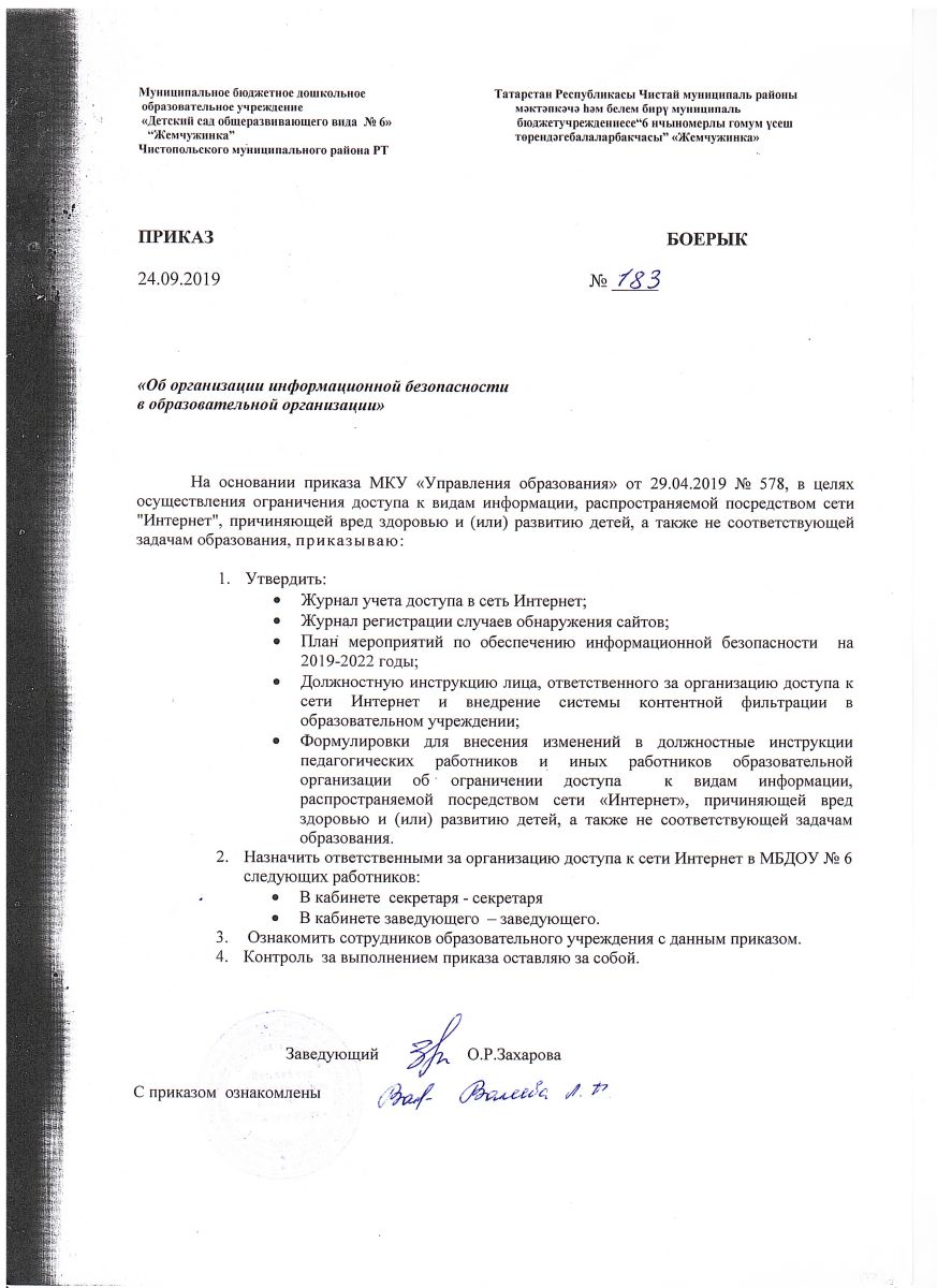 Приказ "Об организации информационной безопасности в образовательной организации"