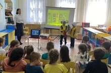 С целью приобщения детей дошкольного возраста к народным традициям и обычаям в ДОУ состоялось развлечение "Встречаем озорную масленицу". Дети пели, плясали, соревновались, прощались с зимой и встречали весну.
