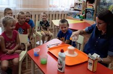 "Төсле вулкан" тәҗрибәсен педагог Мартынова У.А. "Непоседы"төркемендә оештырды.Балалар мондый гадәти булмаган күренешне зур кызыксыну hәм соклану белән күзәттеләр.