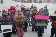 В нашем ДОУ стартовала акция «Покорми птиц зимой». Цель акции – привлечь внимание детей и взрослых к зимующим птицам, чтобы облегчить для них период зимовки, а также повысить уровень экологической активности населения. Зима для птиц – самое трудное время года: много пернатых погибает от холода и голода. Птицы прилетают к нашим жилищам за помощью, и мы должны помочь пережить зиму пернатым друзьям. Такая работа способствует развитию познавательной активности, нравственного самосознания ребёнка средствами экологического образования, и являются прекрасной возможностью проявить сочувствие и доброту. А привлечение родителей способствует укреплению внутрисемейных связей, формированию добрых семейных традиций, вызывает у детей чувство гордости за себя и свою семью. Подкормка зимующих птиц приносит пользу не только пернатым, но и является значимой в обучении и воспитании детей. Дети через беседы, познавательные занятия и наблюдения узнают о различных видах птиц своей местности, узнают характерные особенности внешнего вида, поведения. Учатся заботиться о пернатых, испытывают радость от осознания того, что, подкармливая птиц, можно спасти их от гибели. В рамках реализации акции родители с детьми изготовили из бросового материала кормушки для птиц. У каждого они получились разные, но сделаны с душой, с теплом. Эти кормушки были развешаны на нашем участке и организована регулярная подкормка птиц.