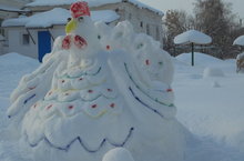 В канун 2016 года, традиционно, педагоги детского сада начали работу над снежными скульптурами на территории ДОУ. Украшением стали: петушки- символы года, Снегурочка и Дед Мороз, Снеговик и самая настоящая елочка-красавица.