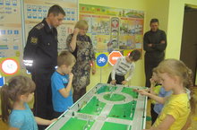 Сегодня состоялась долгожданная встреча воспитанников старшей группы №7 "Непоседы" и подготовительной группы №9 "Улыбка" с сотрудниками ГИБДД. Вместе со старшими товарищами ребята узнали об истории появления автомобиля, а еще продемонстрировали свои практические знания правил дорожного движения. Теоретические и практические знания правил дорожного движения высоко оценены сотрудниками ГИБДД Владиславом Владимировичем и Светланой Рамазановной. Друзья договорились о следующей встрече,но уже на территории ГИБДД, 21.11.2014