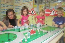 На кружке "Веселый светофор" ребята решают проблемные ситуации, которые предлагает им настольно-напольная игра "Азбука дорог" 12.11.2013