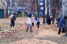 В целях подготовки к зимнему периоду, коллектив дошкольного учреждения организовал уборку территории детского сада