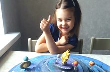 Одним из заданий тематической недели "Космос": узнать о расположении планет Солнечной системы и создать модель из любого подручного материала