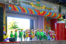 Сегодня никто не остался в стороне от праздника. На праздновании Дня защиты детей наши воспитанницы подарили зрителям прекрасный вокально-хореографический номер "Одуванчик" ("Одуванчик, одуванчи, ты один такой- обманщик; то ты желтый и лучистый, то кудрявый и пушистый...")