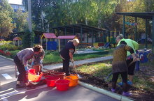 В детском саду начались работы по подготовке территории к зимнему периоду: уборка цветников, перекопка клумб с добавлением перегноя. 18.09.2015