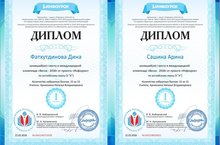 Поздравляем Фатхутдинову Д., и Сашину А., учениц 3А класса, победителей Международной дистанционной олимпиады «Весна - 2018» от проекта «Инфоурок» по английскому языку (учитель Арнюскина Н.В.). Молодцы!