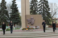 6 нчы май көнне башлангыч сыйныф укучылары Мәңгелек ут янында сугышта ятып калган солдатларны бер минут тынлык белән искә алдылар.