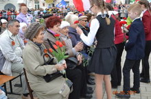 9 мая учащиеся 6 класса на площади вручили цветы ветеранам войны и труженикам тыла (кл.рук.Киснеева А.М.).