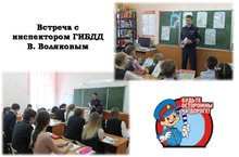 В целях повышения безопасного поведения на дорогах 9 февраля 2017 года прошла встреча с инспектором ОГИБДД Воляковым В. в начальных и страших классах.