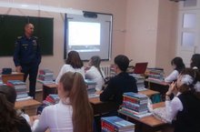 1 нче сентябрь көнне 10 А сыйныфында (сыйныф җитәкчесе: Шанина Р.А.) "Су объектларында куркынычсызлык чаралары уздыру кагыйдәләре" темасы буенча сыйныф сәгате үткәрелде.