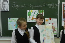 1 нче А сыйныфы (рус төркемендә) укучылары белән "Г.Тукай - бөек татар шагыйре" темасы буенча ачык дәрес үткәрелде.(укытучы: Мурзина Л.И.) Укучылар Г.Тукай һәм аның әкиятләре белән таныштылар, әкият геройларын үзләренең рәсемнәрендә чагылдырдылар, алар бу эшне бик теләп эшләделәр.