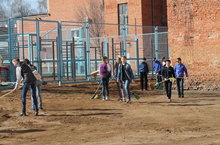 16 апреля учащиеся 8 класса (кл. рук.Сабитова Л.М.) в количестве 33 человек приняли активное участие в субботнике по очистке прилегающей территории