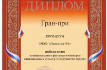 Гимназия №1 – абсолютный ПОБЕДИТЕЛЬ муниципального фестиваля-конкурса национальных культур «Содружество сердец»! 17.12.2015