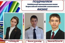 Поздравляем победителей и призеров муниципального тура Всероссийской олимпиады школьников по физике: