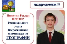 Поздравляем Никитина Руслана, ученика 8Б класса (учитель Шанина Р.А.) призера Регионального этапа Всероссийской олимпиады школьников по географии. МОЛОДЕЦ!!!