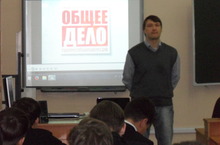 28 ноября 2013 г. в гимназии состоялась встреча с координатором общественной организации "Общее дело" Ивановм В.В., который провел интерактивное занятие с просмотром видео материала для учащихся 11-х классов по теме "Скрытая правда об алкоголе", с целью повышения уровня информированности молодежи о негативном влиянии алкоголя на организм человека и формировании у подростков негативного отношения и употребления алкоголя.