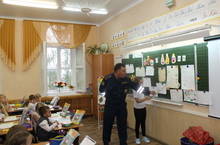 В целях повышения эффективности работы по предупреждению ДДТП и пропаганды безопасного поведения на дорогах среди младшего и среднего возраста в гимназии прошли встречи с гоc.инспектором ОГИБДД, капитаном полиции М.М.Мадыховым