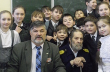 На встречу к ученикам пришли воин-афганец, председатель совета отделения ЧГОТРОИВАДЛК Петров Ю. Н., ветеран флота Гущин А. П. -