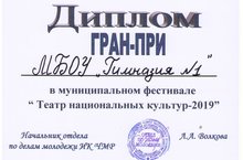 ГРАН-ПРИ муниципального фестиваля «Театр национальных культур-2019» 01.03.2019