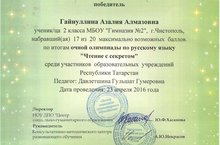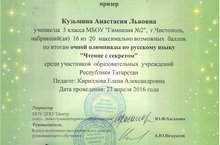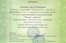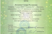 Призёр олимпиады по русскому языку "Чтения с секретом" 26.04.2016