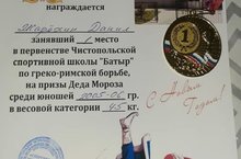 Ученик нашей гимназии Жарехин Д. занял 1 место в первенстве Чистопольской спортивной школы "Батыр" по греко-римской борьбе, на призы Деда Мороза. Молодец, Данил! Поздравляем!
