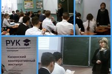 Сегодня с целью профориентационной агитации, гимназию посетили представители Казанского кооперативного института (филиал Российского университета кооперации), которые провели с будущими выпускниками гимназии беседы, ознакомили их с правилами поступления и ответили на все интересующие вопросы старшеклассников.