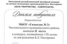 Поздравляем команду гимназии, занявшую II место в музейном республиканском конкурсе, посвящённом 130-летию со дня рождения Б. Пастернака