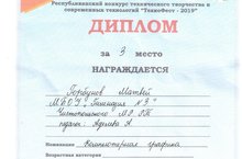Горбунов Матвей (4а) класс стал призером республиканского очного конкурса компьютерных рисунков "Техно Фест-2019", г. Нижнекамск.