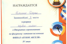 Поздравляем Ильину Д.., занявшую 3 место в разряде «Первые шаги» в Открытых соревнованиях по фигурному катанию на коньках «Финал «Кубок Акселя», которые прошли в Казани. Поздравляем! Молодец!