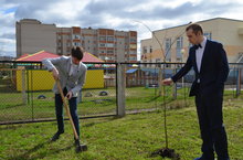 Учащиеся 11 классов приняли участие в акции и посадили саженцы деревьев на территории гимназии.