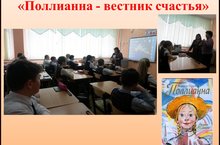 «Быть счастливым - просто! Нужно лишь этого захотеть!» Под таким девизом прошла интерактивная презентация одной книги «Поллианна - вестник счастья» по роману Э.Портер «Поллианна» в 4А классе.