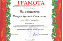 Поздравляем Козырева А., ученика 2а класса - победителя муниципального этапа IV Республиканского конкурса информационно-социальных видеороликов «Ребенок в мире прав» (учитель: Аделева А.А.)