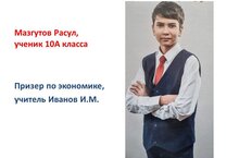 Поздравляем призера регионального этапа всероссийской олимпиады школьников по экономике Мазгутова Расула, ученика 10 класса и его учителя Иванова Н.М. Молодцы!!!