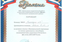 10.02.2017г. команда МБОУ "Гимназия №3" приняла активное участие в Муниципальной спартакиаде по военно-прикладному многоборью, посвященной Дню защитника Отечества и 90-летию ДОСААФ России (ответственный Левин О.М.)