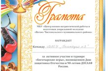 03.02.2017г. команда МБОУ "гимназия №3" приняла активное участие в турнире "Богатырские игры", посвященные Дню защитника Отечества и 90-летию ДОСААФ России.