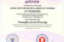 Поздравляем победителей федерального уровня Всероссийского социального проекта «Страна талантов» I потока Всероссийских предметных олимпиад 2016-2017 гг.: Галимову К., Грачеву А., Звягина А., Ибрагимова Д., Мезина М., Осипову П., Прыткова А., Суркина Е., Тимербулатова И., Варламову В., Воейкову Д., Ганина В., Ермолаева Я., Зиганшину А., Зиятдинову Э., Камбулову И., Садовникова И., Сахатову А., Хасанову А., Ярушева Я., Мурзина Э., Орлову О., Сибгатова А., Федорова М., Агаеву Ч., Вострикову П., Константинову Я., Муравьеву Д..