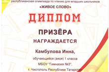 Учащиеся нашей гимназии приняли участие в очной республиканской олимпиаде по чтению для младших школьников «Живое слово». Призерами олимпиады стали учащиеся Камбулова Инна, Лапшина Диана (учитель: Смирнова Е.Г.), Сидоров Марк (учитель: Горелова Н.П.). Поздравляем! Молодцы!