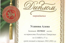 11-13 марта 2016 года в г. Буинск прошло первенство Республики Татарстан по самбо среди юношей и девушек 2002-2003 г.р. Учащиеся нашей гимназии приняли активное участие в этих соревнованиях. Поздравляем Усанову Алену, занявшую 1 место в весовой категории до 37 кг. Молодец! Дальнейших спортивных побед!