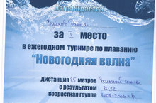 Поздравляем Зуйкова Данила, занявшего 1 место в ежегодном турнире по плаванию «Новогодняя волна» на дистанции 25 метров. Молодец!