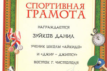 Спортивной грамотой награжден Зуйков Данил, ученик школы «Айкидо» и «Джиу-Джитсу» Восток г. Чистополя. Поздравляем!