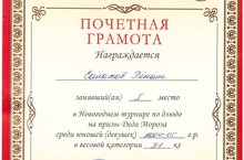 Поздравляем Салахова Рената, занявшего I место в Новогоднем турнире по дзюдо на призы Деда Мороза среди юношей 2004-2005 г.р. в весовой категории 34 кг. Молодец!!! Так держать