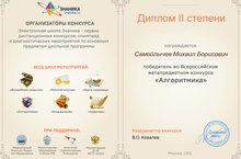 Поздравляем Самойлычева М., Таянова И., учащихся 7 класса (учитель Шамсутдинова Э.Р.) победителей Всероссийского метапредметного конкурса «Алгоритмика» по информатике. Молодцы! Желаем дальнейших побед!