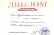 Поздравляем Жукову Д., ученицу 5 класса (учитель Арнюскина Н.В.), занявшую I место в Международном конкурсе "Лисенок" по английскому языку. Желаем дальнейших побед!