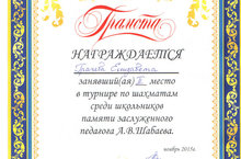Итоги турнира по шахматам среди школьников памяти А.В. Шабаева 17.11.2015