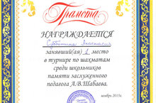 Итоги турнира по шахматам среди школьников памяти А.В. Шабаева 12.11.2015