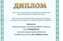 23 мая подвели итоги муниципального конкурса художественной самодеятельности «Эхо победного мая», педагогический коллектив МБОУ «Гимназия №3» занял 1 место! Молодцы!