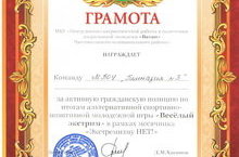 В рамках месячника «Экстремизму - НЕТ!» 19 сентября 2014г. команда гимназии приняла участие в муниципальной молодежной игре «Веселый экстрим» и отмечена грамотой за активную гражданскую позицию.